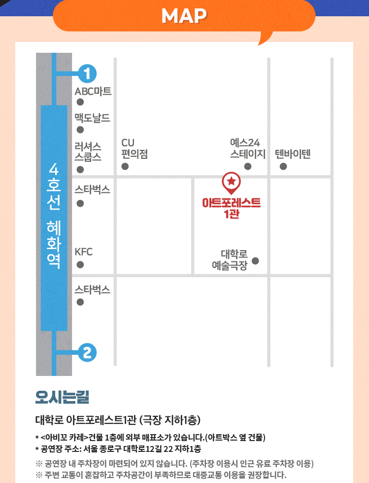 서울 종로구 대학로8가길 85 (혜화역 1번 출구 도보 5분)